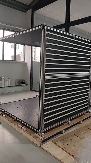 O canto, o apoio e a instalação do teste buit-em dispositivos serão feitos pela madeira compensada que tem aproximadamente 20mm grossos e para ser revestido com a pintura preta maçante. Os pares termoelétricos usados para determing a elevação da temperatura da superfície das paredes, ceilling e assoalho do canto do teste são unidos à parte traseira do disco enegrecido pequeno (feito pelo cobre ou pelo bronze), o disco enegrecido têm 15mm no diâmetro e 1mm grosso. A parte dianteira do disco no resplendor com a superfície da placa.